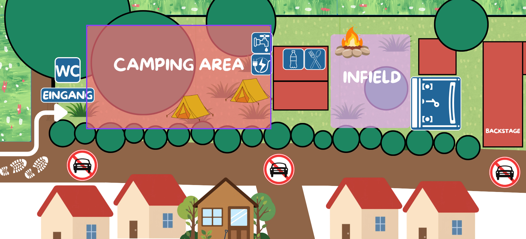 Sobald die Campingfläche voll ist, können weitere Zelte erst nach Ende des Programms auf der Eventfläche aufgebaut werden.